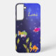 Samsung Galaxy S22+ Case in Deep Blue with illustrated comical fish. The name can be changed. Thanks to Creative Fabrica for some of the elements in the design.