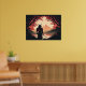This poster features striking digital art of a samurai standing in front of Mount Fuji, with a full moon in the background. The image captures the majesty of the mountain and the grandeur of the samurai, with both elements set against the backdrop of a serene night sky. The samurai is depicted wearing traditional armour and holding a sword, exuding a sense of strength and honour. The scene is framed with cherry blossoms adding a touch of elegance and beauty to the overall art. This poster is a great addition to any room.