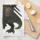 Samurai Cat with Beer & T-Rex | Retro Japanese Art Tea Towel