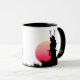 A bold minimalist design depicting a Samurai standing in grass in front of a Pink sun.