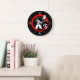 Wall Clock, 25.4 cm Round Black Wooden Frame