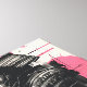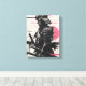 A digital art print featuring a samurai warrior in full armour, standing in profile against a white background with splashes of pink paint. The samurai is depicted in a stoic pose, holding two swords at his side. The image has a bold and graphic style, with sharp lines and contrasting colours. The pink paint splatters add a touch of dynamism and energy to the composition.
