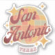 San Antonio City Texas, Retro Vintage Design featuring a disco ball in light brown, pink, and light blue hues. This beautiful sticker is a perfect gift for San Antonio City residents, visitors, tourists or fans.