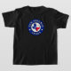 The t-shirt feels and looks great quality, a good thick cotton. It will be a little big for my son, but that means he will be able to wear it and not out grow it too soon. The print was as described on the order when personalised. True size, shape and colour T-shirt- thanks.