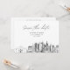 Modern San Antonio black and white save the date invitation. The front showcases a stunning sketch, setting the perfect tone for your wedding day. Add your own photo to the back and customise the text to make it your own. Enter the Zazzle design tool for additional design customisations.