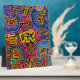 Mola folk art, San Blas Islands, Kuna Indian Ritual. Indie art, modern boho decor, red green blue, yellow orange ivory, Peyote Serpents, Shaman Ritual, Virginia Vivier, Vagabond Folk, primitive decor, Mola Peyote Ritual, Shaman Ritual, Shaman Spirits