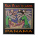 Kuna Indian mola, tropical islands, man in hammock, island monkeys, palm trees, San Blas Islands, Panama, Virginia Vivier, Vagabond Folk Art, black red blue, yellow orange green.