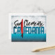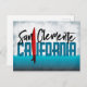 San Clemente California surfing design. A red surfboard with blue and turquoise text - typography surfer theme.