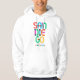 San Diego California classic retro throwback style from the 60s 70s and 80s. Bright primary colours in the 20th-century abstract art style with simple geometric elements. Vintage pop art. Simple bold, wear your hometown out loud.