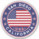 City of San Diego sticker with flag of United States, rounded shape