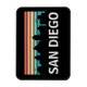 Beautiful and minimal San Diego California flexible magnet featuring a retro sunset skyline view with all the landmarks and buildings. Great travel gift idea and souvenir.