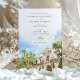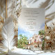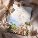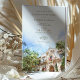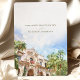 Invite guests to celebrate your wedding with this beautiful invitation featuring a watercolor illustration of the historic Casa del Prado in San Diego, CA. The design captures the charm of Spanish-style architecture surrounded by lush palm trees, all rendered in soft, inviting colours of beige, green, and light blue. The classic typography paired with the picturesque watercolor backdrop creates a timeless and elegant feel, perfect for an outdoor or destination wedding with a romantic, Mediterranean vibe. Ideal for couples seeking a unique and artistic wedding invitation that highlights San Diego’s architectural beauty.