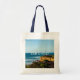This tote bag features a beautiful scenic photo and white modern font of the city name.