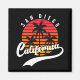 San Diego, California magnet with a retro design that features a sunset and palm trees on black background (customisable bg colour). This design also features California in a handwritten font with a swash tail glyph for that stylish retro look. This fridge magnet is just for you if you are from San Diego or you can get as a gift or souvenir for someone.