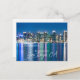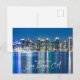 San Diego Skyline Night Travel Souvenir Postcard: This is a photograph of the San Diego skyline taken at night in October 2020. The skyscrapers' lights reflected in the bay's water, and the light of the full moon that was rising at the time led to these blue hues.