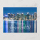 San Diego We Have Moved Moving Announcement Postcard: This is a photograph of the San Diego skyline taken at night. The skyscrapers' lights reflected in the bay's water, with the light of the full moon that was rising. This postcard is the best way to announce your move to San Diego, California.