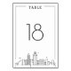 A unique wedding table number cards for a marriage taking place in the beautiful city of San Diego, California. It features a simplified table number resting above a stylised version of the famous city's unique skyline.