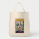 The printing came out very well, better than I had anticipated. The natural color fabric is sturdy with strong seams and comfortable handles. This tote fits easily over my shoulder. As it is filled, the bottom flattens out--very cool! I would buy this product again. This grocery tote holds a lot of groceries! The image quality was very good. The colors were a little darker than I had expected. The darkness may have been due to printing on a natural color fabric rather than on white. The cat design is attractively centered on the tote. The spirit of the design is very lively, just as it appears on the Zazzle website.
