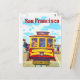 Time to jump on the cable car. This vintage travel print depicts a trolley in San Francisco, California. The Golden Gate Bridge in the background.