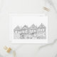 A beautifully illustrated black and white sketch postcard featuring San Francisco's Painted Ladies homes.