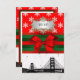 For the Christmas holiday: Customisable invitations, cards and party accessories with an etched look water view of the San Francisco skyline with snowflakes against a red background and red and green satin look ribbon.