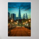 Evening lights glow along the San Francisco waterfront as the Transamerica Pyramid rises into a dramatic twilight sky. A bold cityscape photography print for modern interiors and urban art lovers.