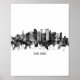 Black and White Skyline of San Jose, a large city surrounded by rolling hills in Silicon Valley, a major technology hub in California's Bay Area