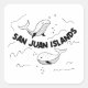 Simple cartoony design with wales, bubbles, and waves and "San Juan Islands" written in bold text.