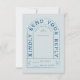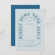 This wedding design features arched typography in a funky vintage inspired font. The font has a playful and retro feel, adding a unique touch to the invitation. The colour palette for the design is a rich teal and light blue, creating a cool and moody atmosphere. The combination of the arched typography and the vintage font gives the invitation a stylish and unique look. Offer your guests the option to RSVP online by using your own QR code for guests to scan with their phones on the back side of this RSVP card.