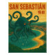 San Sebastian Octopus Attack Vintage Travel Poster