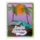 sancti spiritus Cuba travel poster. in a beautiful retro style, featuring a sunset and beautiful old cuban car.