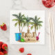 An Adorable Paper Napkin For A Party Done In Palm Trees and A Cute Sand Castle.