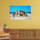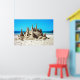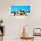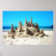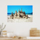 Clourful beach poster of fantastic sand castle by the Pacific Ocean at Noosa, Queensland, Australia
