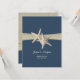 Starfish and sanddollar design reception information card to match our Invitations for your beach or destination wedding.  Classic Navy Blue and natural ivory colours offer an elegant and fun look.  This invitation is entirely printed.  There is no real burlap or starfish attached.