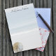Personalised writing paper with beach background and sand dollar image. Light blue water and beach sand with keyhole sand dollar at the bottom. Customise with a line of text at the top, "from the desk of" or "hello from (name)" or just a name or monogram initials. A company or business name would also work.