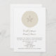 A simple yet elegant beach wedding invitation featuring an illustration of a sand dollar at top centre. Personalise the text with details of your occasion.