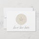 A wedding save the date featuring an illustration of a sand dollar at top centre on front. Personalise the text on front and back.