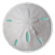 A beach sand dollar in white and turquoise. Perfect for a beach themed home decor.