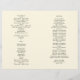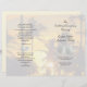 Sand dollars and palm trees folded wedding program template. Use four pages to customise this ceremony program for your tropical / beach themed marriage. One side contains a sunny tropical background image with tall palm trees. When folded, each side will become the front and back of the program. The reverse is light yellow with black text with lots of space for a long wedding ceremony. Include a thank you message beneath the "love is patient" scripture on the last page.