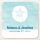 These paper coasters coordinate with the Sand Dollar wedding suite and can be personalised with your names and wedding date. Features a watercolor wash background in blue and a graphic sand dollar.