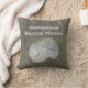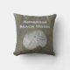 This beach house pillow features a nature photo that captures a sand dollar sitting in wet sand. The white sand dollar is surrounded by brown and grey sand. Quickly and easily personalise with your family name.