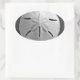 A sand dollar seashell rests on the sand beach coastline with gentle side lighting from the sunset. Image is a black and white photo taken at Playa Grande, Costa Rica on the Pacific Coast. Personalise this sea shell sticker with your own text or images using the customise it option to make a special seashell gift!