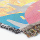 A quality printed throw has its advantages. This is a much finer weave throw than its loopier cousins, and though lighter, it is worth the investment for custom room accessorizing. The back is much prettier than the typical brown, and the fringe on the long sides very vivid, the selvage nicely done. Before photographing, I washed the throw in cold water, delicate, with a thicker woven throw the same size. On tumble dry low, this throw was dry in half the time as the other. This is a very practical quality if you use throws for furniture covers or to wrap up in frequently. The sleekness of the fabric makes it a great layer for accenting or protecting without the feeling of sitting on too much stuff. Perfect for napping or when you feel a light chill coming on. The color printing is beautiful and on this fabric, matched the design and color of my Photoshop image. This is an advantage for blending room fabrics and colors. The fringe on the short sides prints the colors from the design image and therefore varies from the side fringe. I streaked a white fractal line through the plaid pattern to give the illusion of weaving. This printed as crisp as an illusory thread, and put some white in the short side fringe, showing another advantage of print vs loomed- for artistic purposes, line lines, detail, and color integrity can be planned and preserved. My loomed throws have color limitations and more of a needlepoint texture. Print throws reproduce an exact image. The throw felt a little stiff straight out of the package, but this went away in the first delicate wash. Of course I searched the wash water for ink or bleeding and there was none.