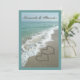 Elegant Sand Hearts Beach Destination Wedding Invitations. Beautiful scenic image of clear aqua ocean water, crashing on the beach. Two interlocking hearts symbolise eternal love! Beach Destination Wedding Invitations, design and preview online. Add your custom text.