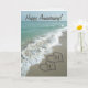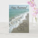 Interlocking sand hearts written in the sand. Romantic Anniversary greeting card where personalised initials are enclosed inside the interlocking hearts on the sand. Show your love of the beach, ocean or travel with this unique Valentine card for wife.