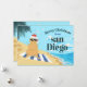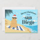 Cool christmas-themed illustration featuring a man made of sand on a beach and the quote "Merry christmas from San Diego".