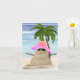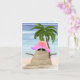 Tropical sand man with sun hat and sunglasses in sand on ocean watercolor background.
