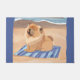 A sweet design for summertime decor and wear. Little chow is getting a tan on the beach with a blissful expression on his face.