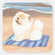 A sweet design for summertime decor and wear. Little chow is getting a tan on the beach with a blissful expression on his face.