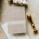 Designed to match our Script Watermark wedding invitations, this elegant typography based RSVP card is perfect for traditional mail-in RSVPs. Design features oversized script lettering at the top, in tone on tone shades for a watermark effect. Personalise with your desired RSVP date and custom accept and decline wording in classic serif lettering aligned at the lower right, along with meal choices or entree selections. Our Sand colorway is an elegant mix of earth tone shades, with pale cream and terracotta clay lettering on a soft sandy beige background.